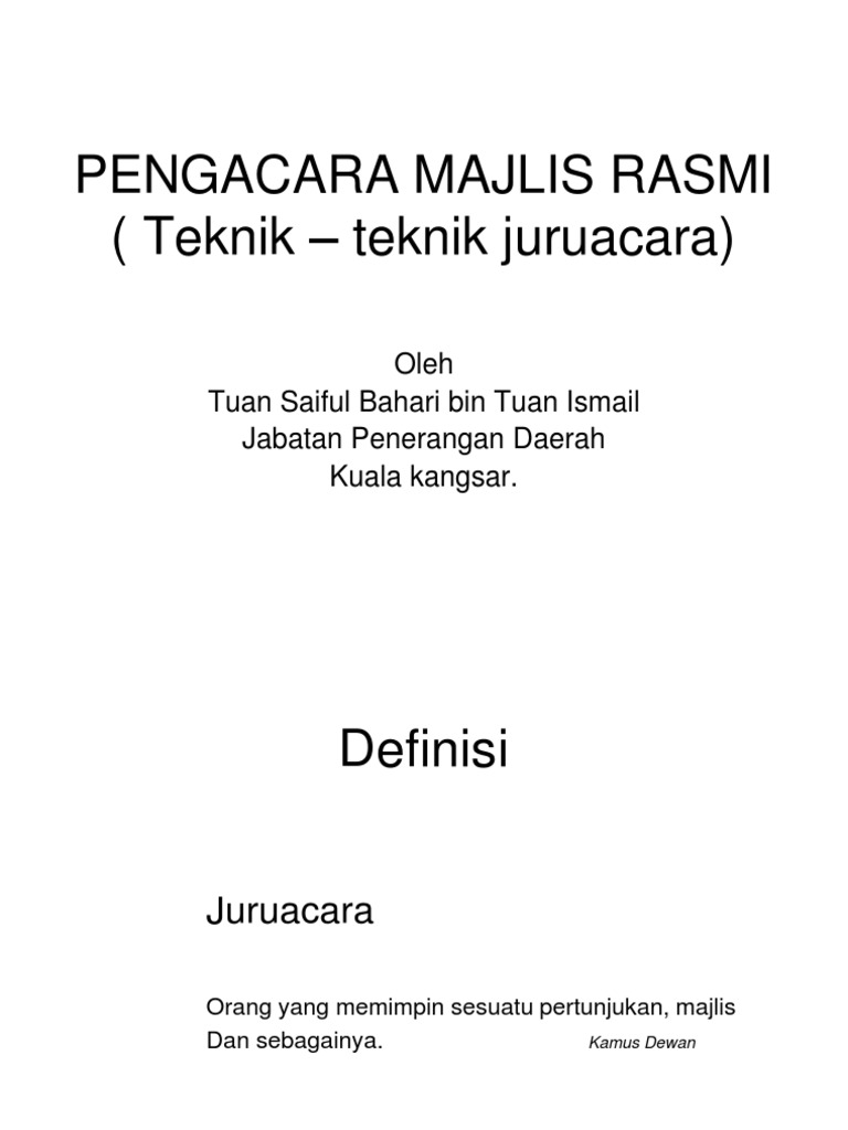 Teks bagi juruacara perlu disediakan bagi semua majlis yang penuh adat istiadat dan majlis-majlis formal. 019-7412493 AlamatNo 21 jalan Harmoni 5 Tmn Harmoni 86200 Simpang Rengam Johor. Tapi dah sering berada di meja pengacara majlis sejak berkhidmat sebagai seorang guru.