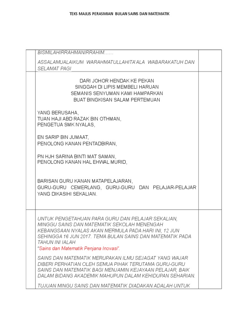 Teks pengacara majlis perhimpunan rasmi sekolah rendah. Teks Pengacara Majlis Rasmi Sekolah. Teks Pengacara Majlis Perhimpunan Sekolah Dalam. Mar 15 2020.
