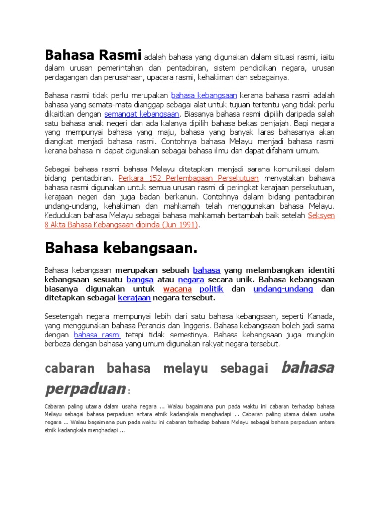 Bahasa Rasmi Adalah Bahasa Yang Digunakan Dalam Situasi Rasmi