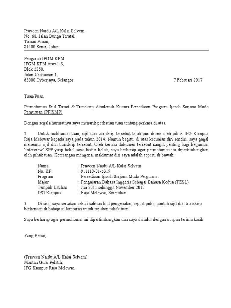 19102019 Graduan Universiti Malaya UM Wong Yan Ke mendesak universiti itu agar menarik balik laporan polis yang dibuat ke atas dirinya bagi membuktikan komitmen institusi pengajian tinggi itu. 11022020 You just have to click on the gallery below the Contoh Surat Tawaran Kerja Polis picture. 10052015 Surat kepada polis pohon kawalan keselamatan dan trafik 1.