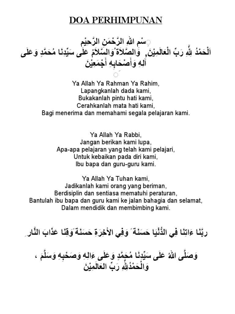 Koleksi Lengkap Doa Majlis Rasmi Dan Tidak Rasmi Layanlah Berita Terkini Tips Berguna Maklumat. Arahkan pelajar beratur mengikut kelas. Sama-sama bantu membantu antara satu sama lain.