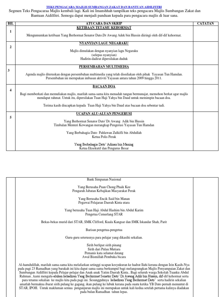 Teks Pengacara Majlis Sumbangan Zakat Dan Bantuan Aidilfitri