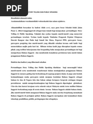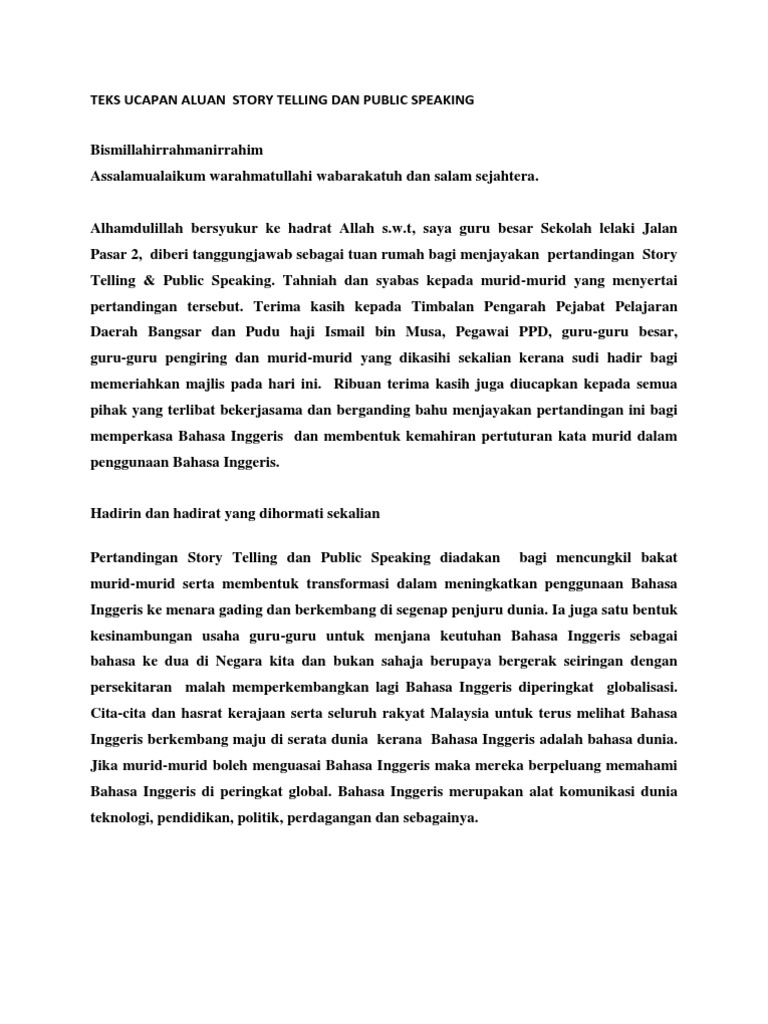 Teks Ucapan Aluan Dalam Majlis Pertandingan Story Telling