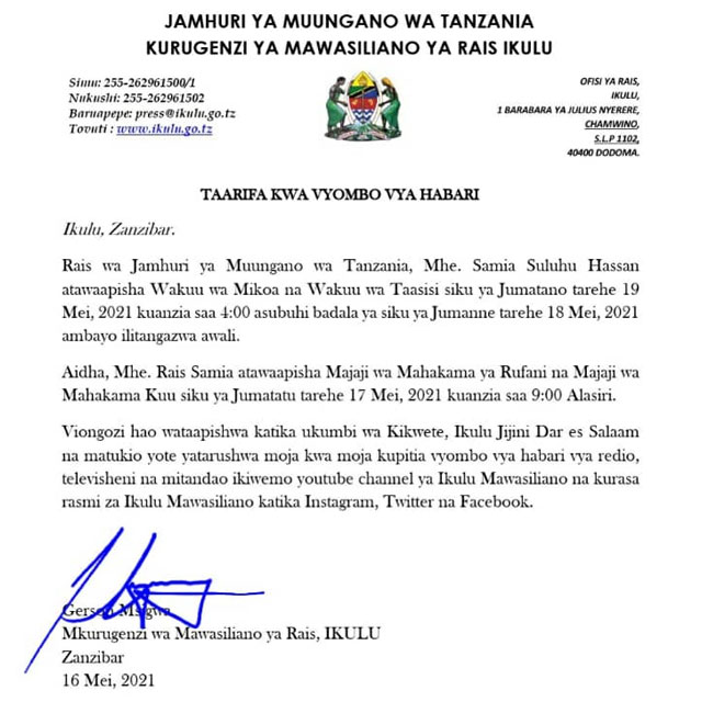 Hadi saa 700 ya leo mawaziri wanaoonekana katika tovuti ya Ikulu ni Dotto Biteko Waziri wa Madini Dk. Bunge hilo lilikuwa na wajumbe kutoka Bunge la Jamhuri ya Muungano wa Tanzania Baraza la wawakilishi Zanzibar na wanaowakilisha makundi mbalimbali ya wananchi 201. Aidha waombaji wa aina hii wamejulishwa kuhusu udahili wao kupitia ujumbe mfupi uliotumwa kwenye namba za simu za.