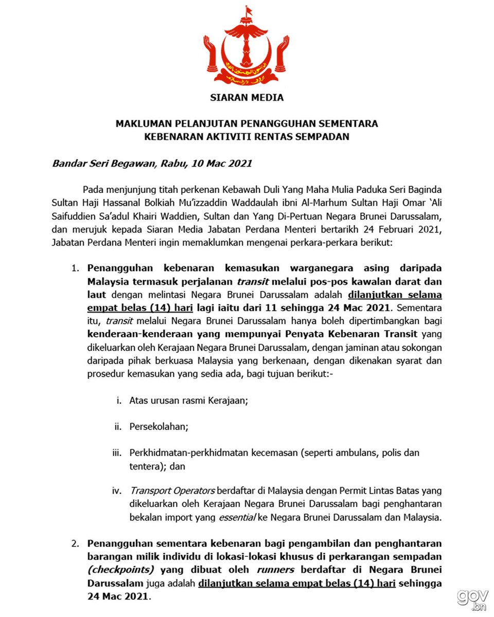 Gov Bn On Twitter Makluman Pelanjutan Penangguhan Sementara Kebenaran Aktiviti Rentas Sempadan Extended Temporary Suspension On Cross Border Activities Covid19 Govbn Brunei Https T Co Khsuzgpank