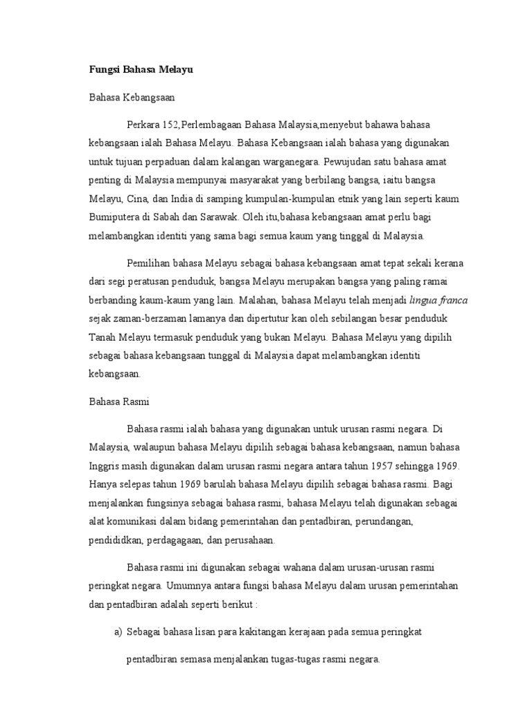 30032021 Hal ini demikian kerana ia menunjukkan bahawa Bahasa Malaysia adalah bahasa rasmi yang digunakan dalam urusan yang melibatkan pentadbiran di negara ini. Daripada aspek penggunaan bahasa Melayu dalam urusan rasmi di UKM pula kajian mendapati penggunaan bahasa Melayu yang tertinggi adalah bagi urusan boring. Sebagai bahasa rasmi bahasa Melayu ditetapkan menjadi sarana komunikasi dalam bidang pentadbiran.